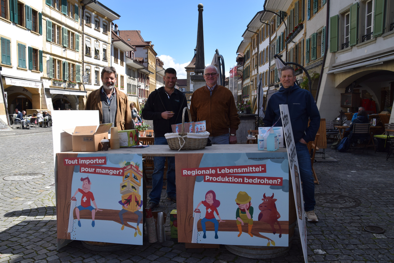 A Morat, Fritz Glauser et Hans Perler, président et vice-président de l'Union des Paysans Fribourgeois, se sont mêlés aux passants. Beaucoup ont profité de l'occasion pour exprimer leurs préoccupations et leurs questions. "L'échange d'informations directes et factuelles entre agriculteurs et consommateurs est très apprécié par les deux parties", observe Fritz Glauser. Il salue les agriculteurs qui ont fait preuve d'un grand engagement au cours des dernières semaines. "Pour le temps qui reste jusqu'au vote, il est important de rester actif", souligne-t-il. Pour Stefan Krähenbühl, agriculteur biologique de Greng, l'échange a également été instructif. "Nous devons rechercher beaucoup plus de contacts avec la population non rurale", était-il convaincu. Les nombreuses discussions de ces dernières semaines lui ont clairement montré que beaucoup de gens n'étaient pas conscients de tout ce que les agriculteurs avaient déjà réalisé, comme la réduction de l'utilisation d'antibiotiques ou de pesticides.
