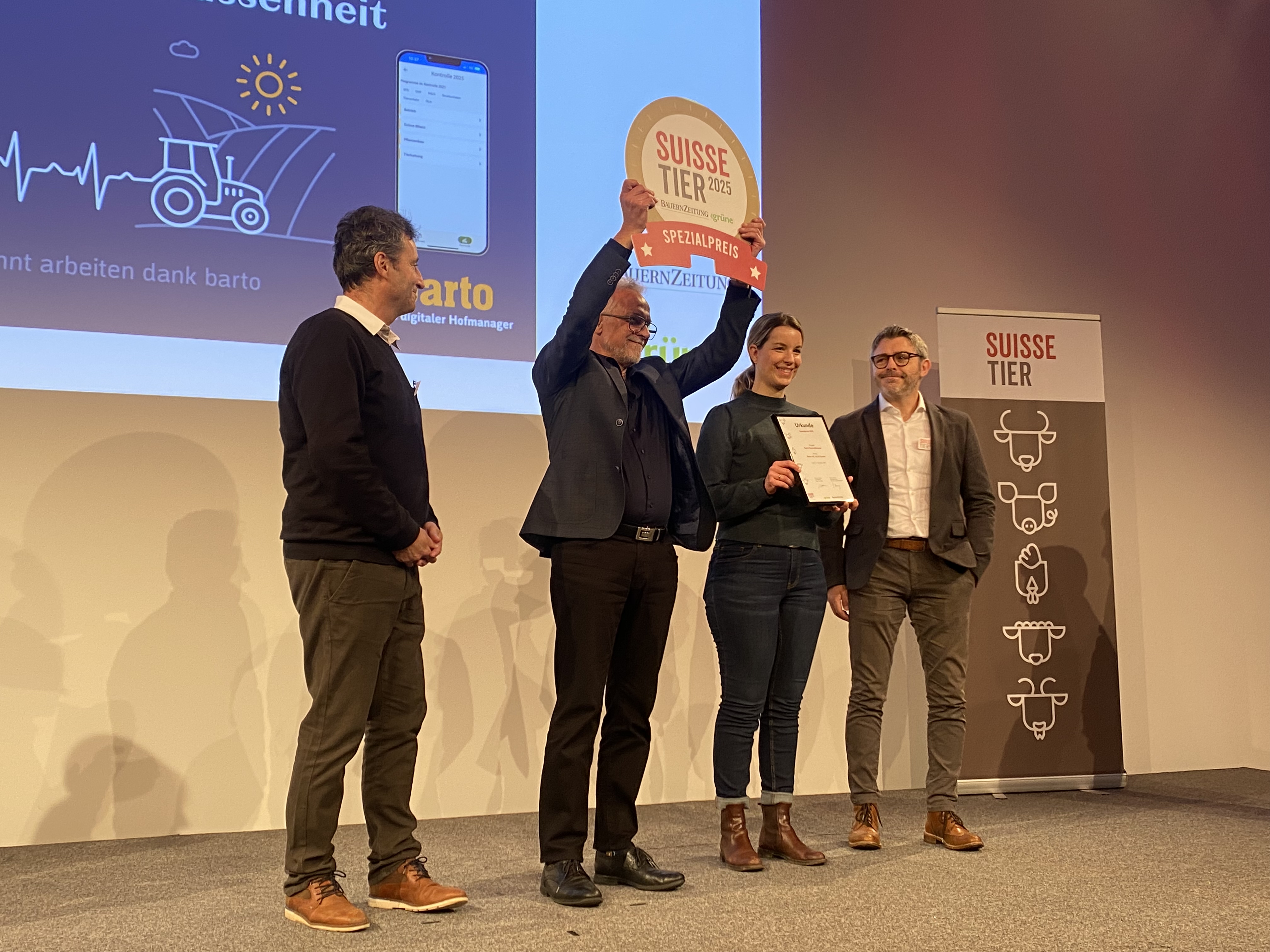 Le partenariat fructueux entre AGRIDEA, bio.inspecta et barto a une nouvelle fois donné naissance à un module innovant. Ce travail a été récompensé par le prix spécial dans la catégorie « Nouveauté » lors du salon Suisse Tier 2025 à Lucerne. En tant que partenaire technique, l'équipe Smart Farming de Bison Schweiz AG a développé le logiciel.