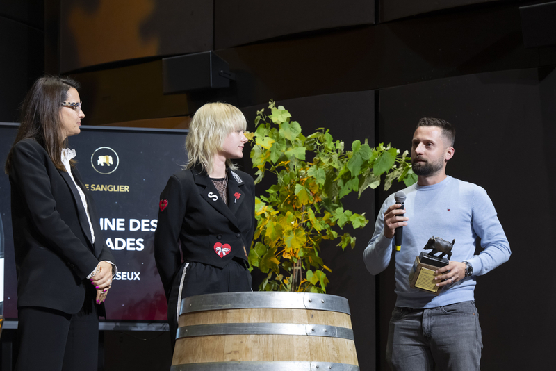 La conseillère d'Etat Anne Hiltpold et la chanteuse Stéphane ont remis à cette occasion le fameux trophée du sanglier, qui récompense le vin ayant obtenu le plus haut pointage, à Xavier Dupraz du Domaine des Curiades à Lully pour son effervescent Tradition brut, grande première pour cette catégorie de vin !