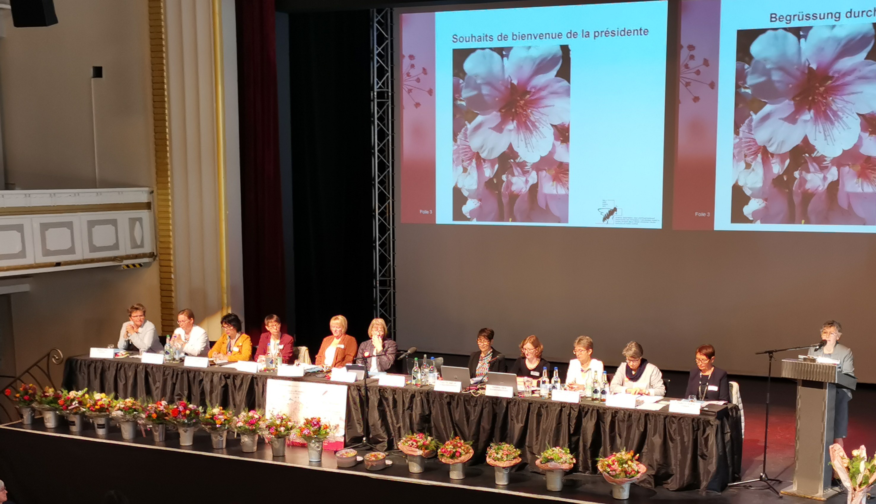 En effet, les déléguées et les invité(e)s de l’ad 2019 de l’USPF ont pris congé dans une ambiance pleine d’émotion de leur présidente, Christine Bühler. Après de nombreuses années comme présidente, elle a décidé de partir au sommet de son engagement. Elle transmet le mandat de présidente de l’USPF à Anne Challandes. Cette dernière dit que ses manches sont retroussées et qu’elle est motivée pour saisir ce nouveau défi.