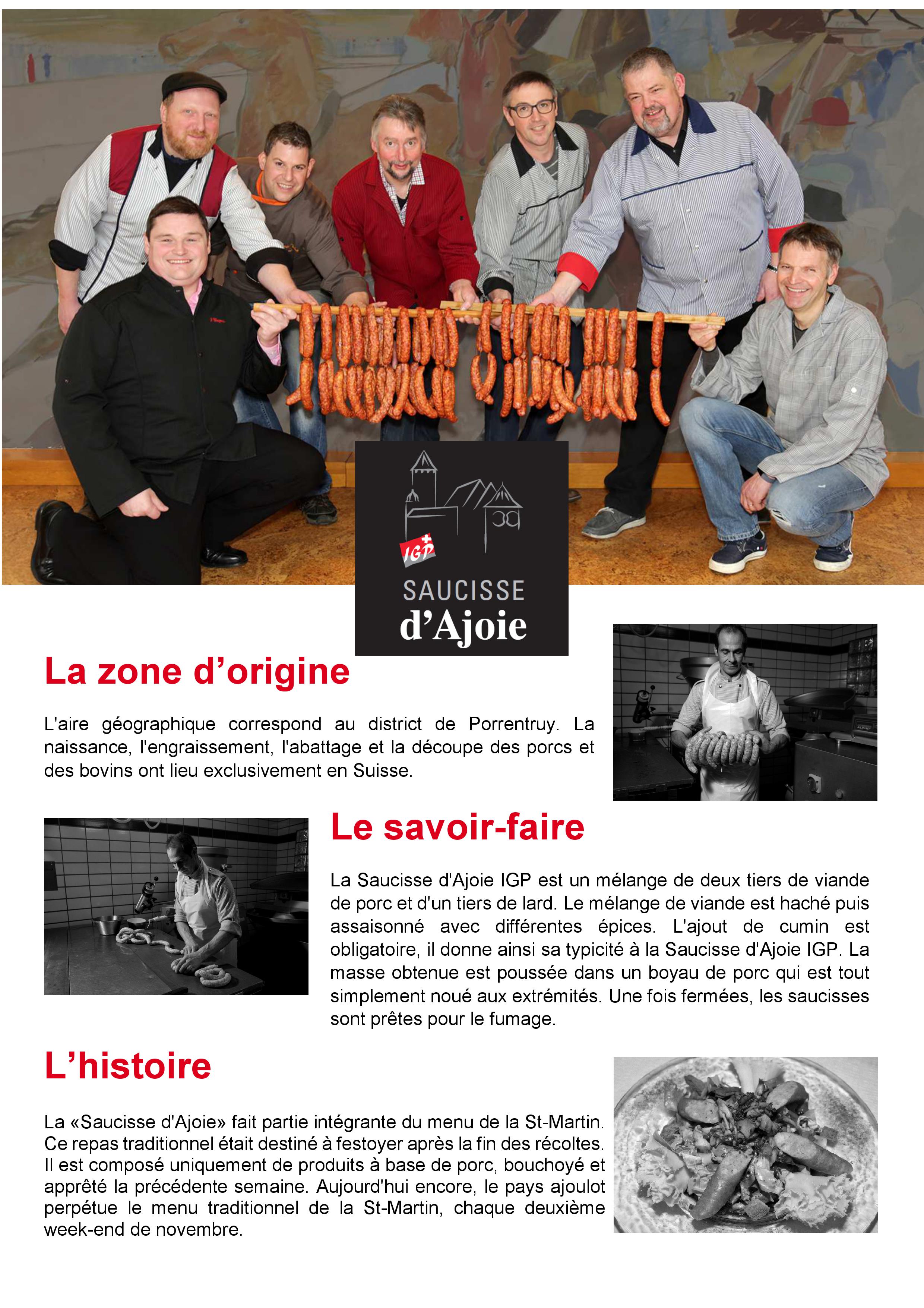 Cette initiative de l’Interprofession Saucisse d’Ajoie IGP vise à mieux faire connaître cette spécialité nationale inscrite à l’inventaire du Patrimoine culinaire suisse.