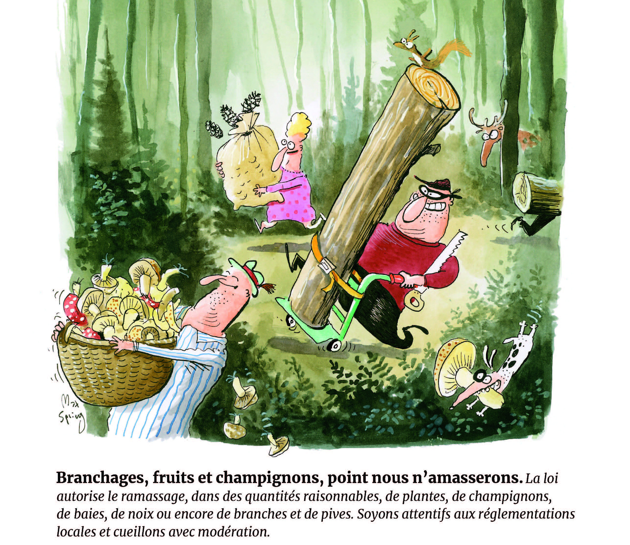 «Tous les préceptes sont formulés sous forme d’invitation. Nous ne souhaitions pas que le promeneur se sente pointé du doigt, mais plutôt que ce guide lui permette d'établir une cohabitation paisible», précise Regina Wollenmann avant d'évoquer les illustrations pleines d'humour et de finesse de Max Spring.