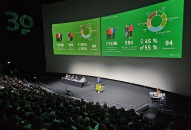 En introduction à l’Assemblée, le Président du Conseil d’administration Pierre-André Geiser est revenu sur l’histoire de fenaco qui a commencé par la fusion, en 1993, de six fédérations de coopératives régionales. A l’époque, fenaco était en mains de 624 LANDI. Le premier rapport de gestion faisait état d’un produit net d’un peu plus de CHF 3 Mrd. Environ 4000 collaborateurs et collaboratrices travaillaient pour fenaco et ses sociétés-filles. Depuis, l’entreprise s’est énormément développée. Le nombre de LANDI membres est passé de plus de 600 à 153. Le produit net a augmenté pour atteindre CHF 8 Mrd tout comme le nombre de collaboratrices et collaborateurs qui s’élève désormais à plus de 11 000. « Nous pouvons être fiers de cette évolution », a déclaré Pierre-André Geiser. « Aujourd’hui, nous voulons célébrer cela ensemble. »