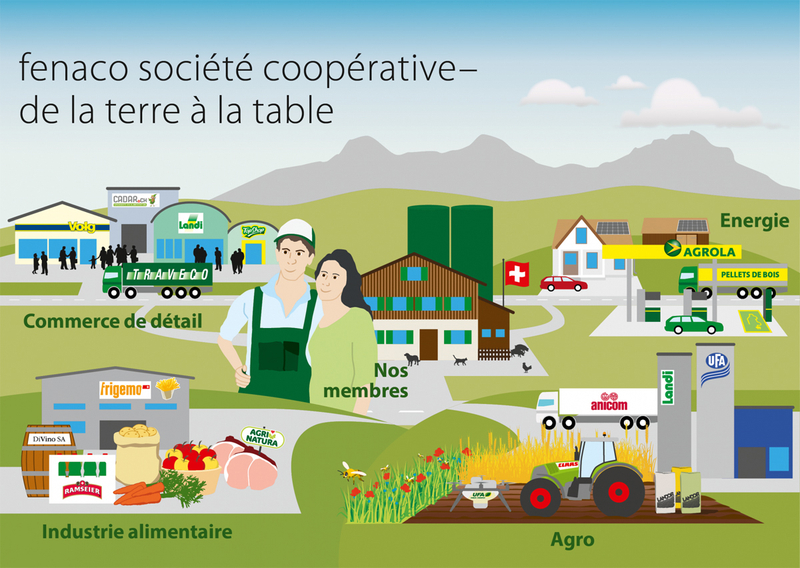fenaco est une société coopérative agricole reposant sur un concept centenaire. Elle appartient à 186 LANDI et à leurs quelque 43 000 membres, parmi lesquels près de 22 000 agricultrices et agriculteurs suisses actifs. En tant que partenaire de commercialisation de produits de l’agriculture, fenaco veille à ce que les denrées alimentaires suisses de haute qualité (fruits, légumes, pommes de terre, céréales, viande et boissons) parviennent jusqu’aux clients. En tant que fournisseur, fenaco propose aussi un large éventail de produits et de prestations pour garantir une agriculture durable, efficace et orientée vers le marché. Les marques de fenaco les plus connues sont RAMSEIER Suisse (boissons), Ernst Sutter (produits carnés), Volg et LANDI (détaillants), LANDOR (engrais), UFA (aliments fourragers) et AGROLA (énergie). fenaco société coopérative, dont le siège est à Berne, emploie plus de 10 000 collaborateurs et a enregistré un produit net de CHF 6,77 milliards en 2018. www.fenaco.com
