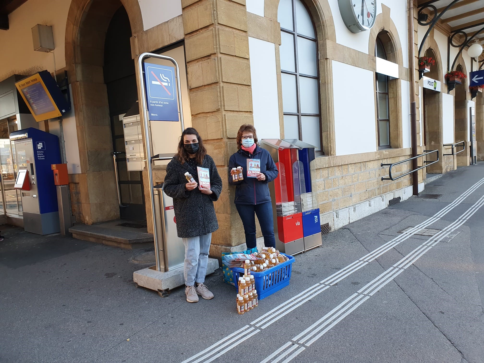 Dès l’aube et le passage des premiers trains, de nombreux agriculteurs et agricultrices se sont rendus dans différentes gares de Suisse romande pour y distribuer quelques 30'000 bouteilles de jus de pomme aux couleurs de la campagne « 2x NON aux initiatives phytos extrêmes ». Alors que les citoyens helvétiques ont déjà reçu leur matériel de vote, cette action est l’occasion d’un contact et d’un échange avec, notamment, la population urbaine.