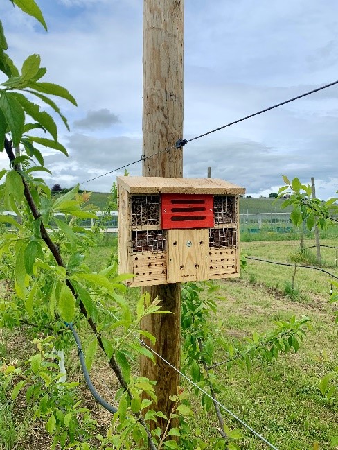 La Production Intégrée repose sur le principe de ne traiter qu’en dernier recours. Des mesures préventives sont mises en place pour favoriser un bon état de santé des arbres et limiter la présence des maladies et ravageurs. Le broyage des feuilles à l’automne, l’implantation de nichoirs à mésanges et d’hôtels à insectes, favoriser la présence d’insectes utiles dans les vergers par des prairies fleuries aux abords des vergers… voici quelques exemples de ces nombreuses mesures préventives.