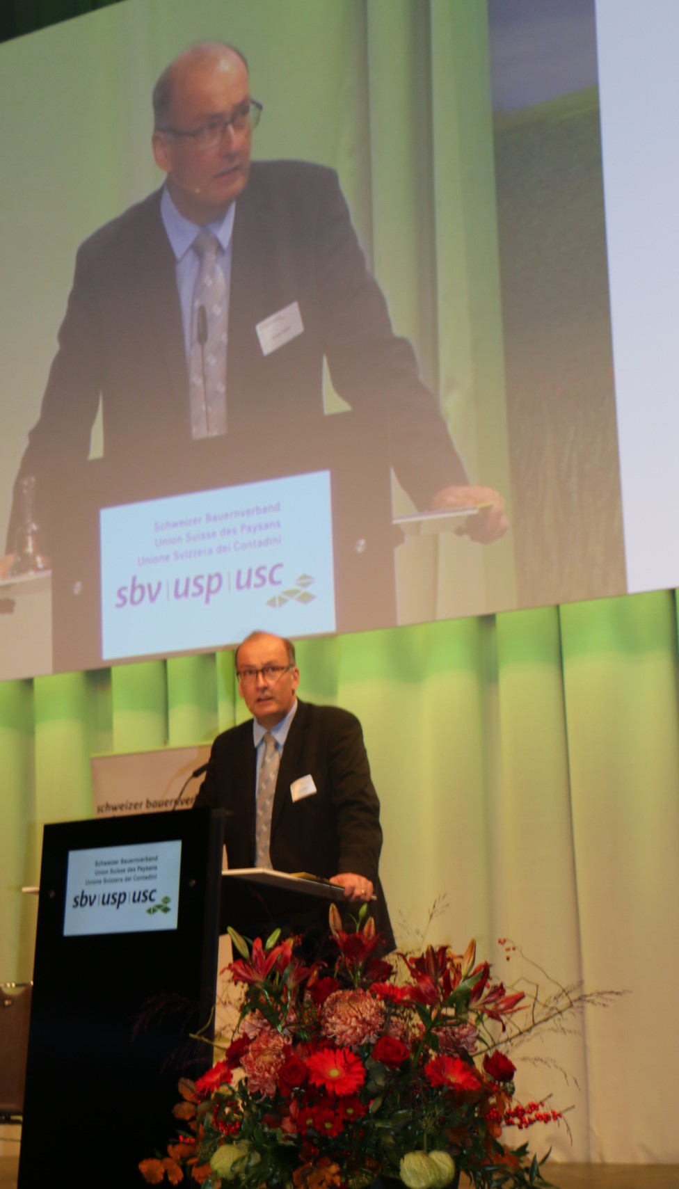 En 2002, Jacques Bourgeois a repris la direction de l’Union suisse des paysans (USP), dont il avait dirigé le département Production végétale et environnement pendant les quatre années précédentes. À l’occasion de l’Assemblée des délégués (AD) de ce jour, il a annoncé qu’il quitterait son poste d’ici à fin mars 2020. M. Bourgeois continuera de défendre les intérêts du secteur agricole indigène en qualité de conseiller national. Markus Ritter, président de l’USP, l’a remercié pour ses nombreuses années d’engagement en faveur des familles paysannes suisses et a rappelé les étapes clés de son temps à la direction (cf. annexe). De plus, M. Ritter a informé l’assemblée que le Comité s’occuperait de planifier la succession de M. Bourgeois en décembre. L’USP privilégie une solution en interne.