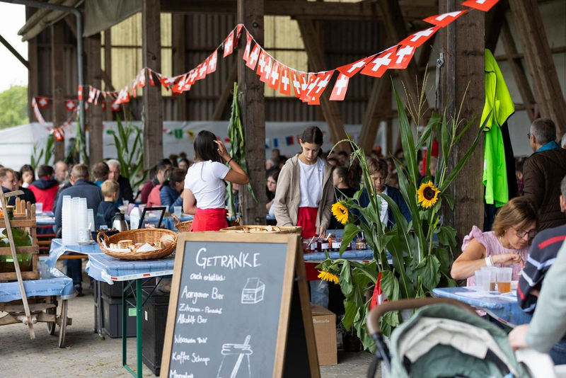 Le village de Schüpfen (BE) est en effervescence : le jour de la fête nationale, le conseiller fédéral Beat Jans brunchera à la ferme Schüpberg. Il en est de même à Saint-Pierre-de-Clages (VS), où le domaine La Maison des Résistants recevra la conseillère fédérale Elisabeth Baume-Schneider. Les deux exploitations comptent parmi les 280 qui participeront cette année au Brunch à la ferme du 1er août. Cette tradition est une occasion unique de découvrir de près la diversité et la qualité de l’agriculture suisse. Pâtisseries tout droit sorties du four, confitures maison, délicieuses spécialités de fromage et de charcuterie, fruits et légumes frais… chacun y trouve son compte. Nombre de produits proposés proviennent directement de la région, gage de fraîcheur et de qualité optimales. Le Brunch à la ferme du 1er août est non seulement synonyme de plaisir et de convivialité, mais permet aussi de constater l’approche durable qu’applique l’agriculture suisse et le bien-être particulièrement élevé dont jouissent les animaux. Ce contact direct entre le producteur et le consommateur favorise la compréhension des cycles régionaux et une consommation en connaissance de cause.
