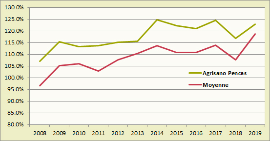 Graphique : Agrisano Pencas affiche un taux de couverture nettement supérieur à la moyenne des institutions de prévoyance de droit privé: voir graphique sur le document original en pièce jointe.