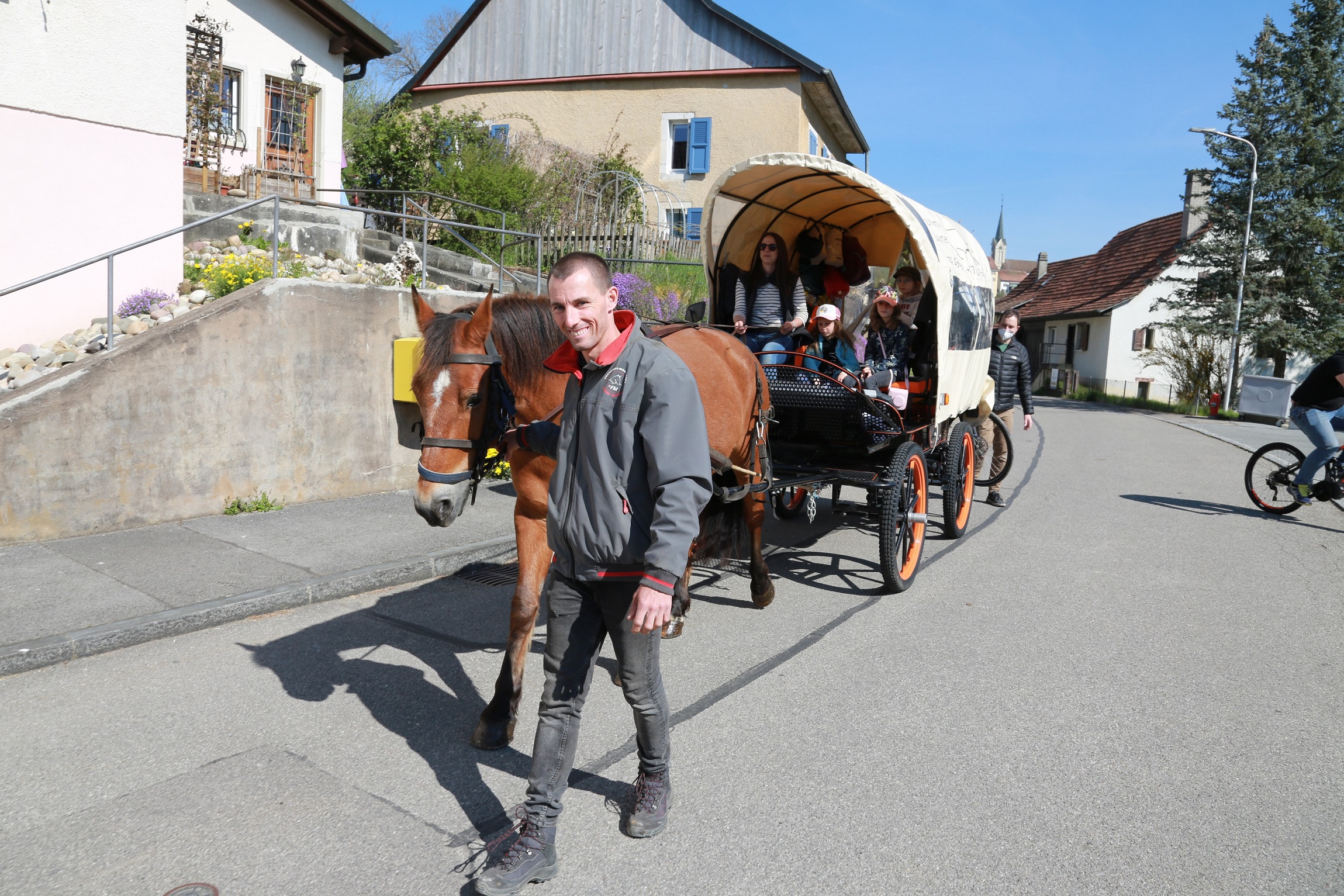 Plus de 500 éleveurs membres de la FJEC détiennent un quart des chevaux de toute la race. Ce cheval unique en Europe détient des qualités qui conviennent parfaitement pour la pratique du sport et des loisirs en famille. C’est dans ce cadre-là, que la FJEC et plus particulièrement le comité des jeunes éleveurs, coordonne l’organisation du voyage médiatisé en roulotte d’une famille vaudoise. Du Jura, berceau de la race Franches-Montagnes, jusqu’à Avenches, la famille Cavadini en compagnie du cheval Franches-Montagnes au nom de « Héroïque » sera suivie dans son périple par la RTS dans le cadre de l’émission « une seule planète » qui vise à encourager des habitudes de consommation durable. Alessia, Fred, Jade (10 ans), Margot et Roxane (8 ans) Cavadini ont débuté leur périple à Courtedoux le 27 avril chez David Protti, Tourisme équestre Courtedoux (prestataire marguerite) et prévoient une arrivée 1 mois plus tard à Avenches où ils seront accueillis par la fédération suisse du cheval Franches-Montagnes. Durant leur périple, ils sillonneront les réseaux équestres Marguerite entre autres et séjourneront chez les prestataires agritouristiques membres de BeJu tourisme rural. Ils dégusteront les produits du terroir de la région tout en profitant des grands espaces et de la nature préservée offerte par la destination Jura & Trois-Lacs. Le comité des jeunes éleveurs de Franches-Montagnes s’est chargé de coordonner l’organisation du voyage de cette famille en collaboration avec le 10 sponsors qui ont pu rendre ce projet possible et ainsi saisir l’opportunité de mettre notre région en valeur : Association Marguerite, fédération suisse du Franches-Montagnes, fédération jurassienne d’élevage chevalin, Jura & Trois-Lacs, marque régionale spécialité du canton du Jura, marque régionale Jura bernois produits du terroir, interprofession Tête de Moine, association suisse des AOP-IGP, ville de Porrentruy, banque Raiffeisen.