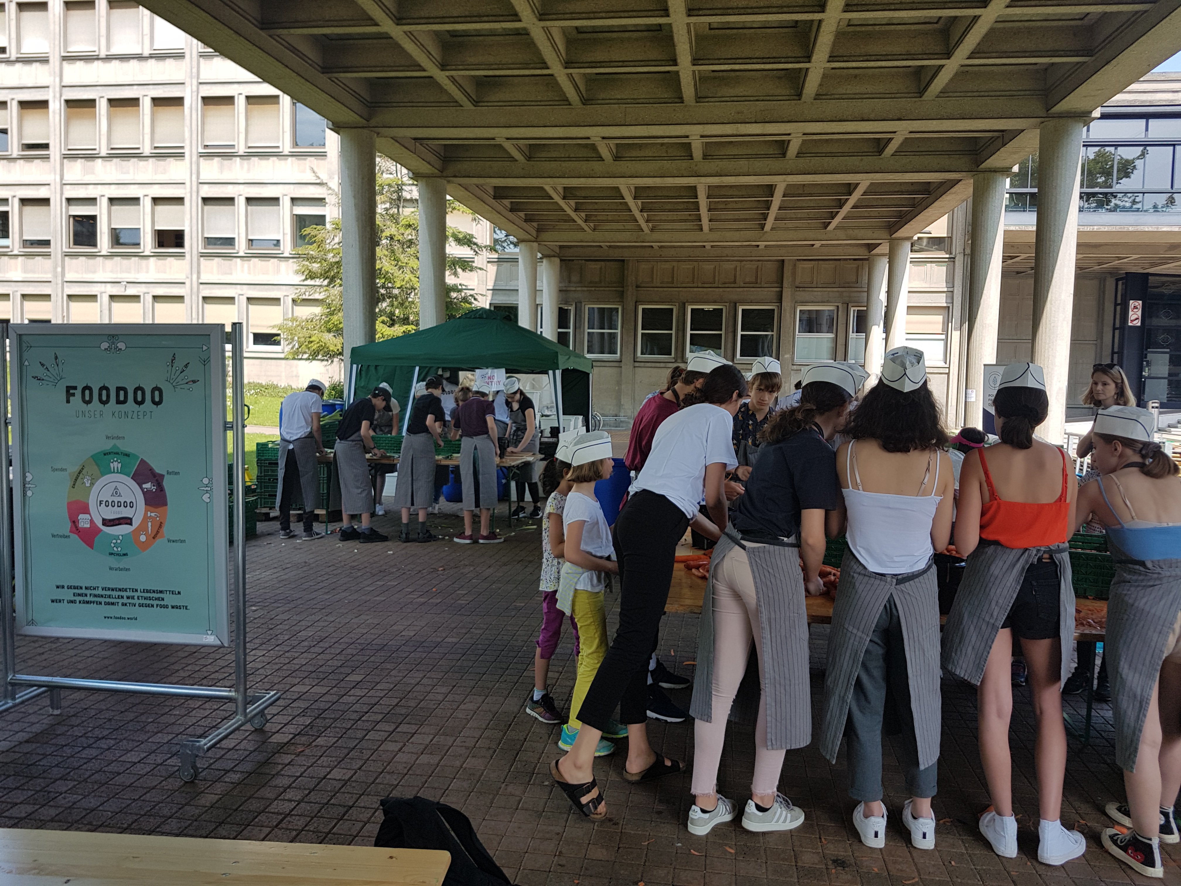 Les travaux des élèves ont été exposés dans le hall d’honneur de l’Aula Magna. Durant toute la journée, sur l’esplanade de l’Université, les jeunes ont pour leur part participé à la préparation d’une tonne de bouillon concocté avec des légumes frais provenant directement des maraîchers et dont le calibrage ne répond pas aux normes de la grande distribution. Bel exemple de lutte contre le gaspillage!