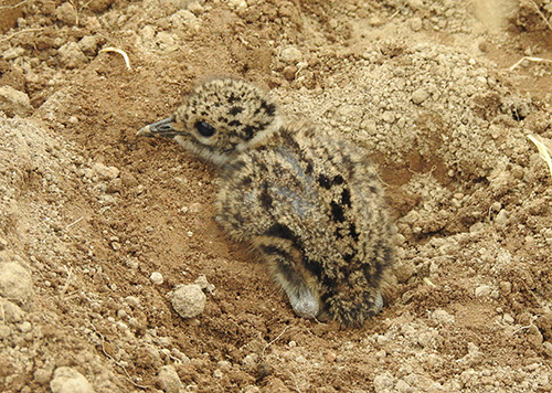 Le vanneau huppé (Vanellus vanellus) est une espèce d'oiseaux limicoles. En février déjà, ces magnifiques oiseaux reviennent en Suisse depuis leurs quartiers d’hiver situés dans la région méditerranéenne. Ils nichent en colonies, ce qui leur permet notamment de se protéger mutuellement contre les prédateurs. La femelle pond 3 à 4 œufs qu’elle couve pendant 26 à 29 jours. Dès le premier jour après l’éclosion, les poussins recherchent leur nourriture de façon autonome. Ils sont surveillés et réchauffés au besoin, surtout par la femelle. Le mâle essaie pour sa part de repousser les ennemis. Les premières semaines, les jeunes vanneaux se plaquent au sol en cas de danger. Mais ce qui fonctionne bien avec les ennemis naturels devient un réflexe mortel face aux machines agricoles. Si, en outre, les champs sont traités avec des pesticides, la nourriture sous forme d’insectes ou de petits vers de terre vient à manquer. Les changements climatiques ont également un impact sur la survie de l’espèce. Ainsi, lors de périodes sèches, les jeunes meurent de faim, car leurs proies potentielles se retirent dans la profondeur du sol.