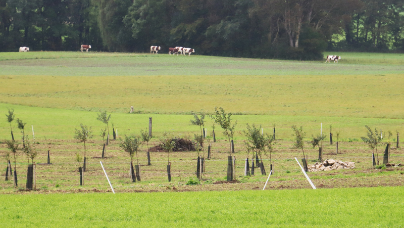 "On a décidé d’entrer dans le projet, explique ce dernier, parce qu’on voulait prendre notre part aux efforts engagés, et montrer à nos enfants que nous ne restons pas les bras croisés. Ces nouvelles pratiques, dans un contexte de transition climatique, nous sommes la première génération d’agriculteurs à devoir nous les coltiner. Et les mesures en faveur de la biodiversité deviennent, pour nous, un secteur à part entière". A l’automne 2022, Christophe Meylan, qui exploite un domaine agricole conventionnel de 150 hectares, entreprend donc de transformer une parcelle céréalière trop peu productive en verger à hautes tiges. C’est Quentin Kohler, chef de projet chez Pro Natura, qui assure le suivi des aménagements de petites structures sur le site, à raison de cinq à l’hectare, entre les plantations de pommiers, poiriers, cognassiers ou mirabelliers. Il peut d’ailleurs témoigner des efforts quotidiens pour les sauver, au fil d’une année 2023 trop chaude et trop sèche.