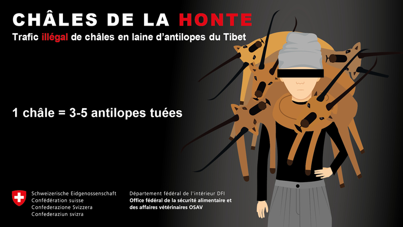 Le commerce des châles en laine shahtoosh - considérée comme la plus fine du monde - est strictement interdit. Aussi, depuis 2013, l’Office fédéral de la sécurité alimentaire et des affaires vétérinaires (OSAV) effectue des contrôles renforcés en collaboration avec l’Administration fédérale des douanes (AFD). Chaque année, de nombreux châles sont ainsi saisis en Suisse. Il est indispensable d’encourager la collaboration internationale et de sensibiliser les clients potentiels pour contrer efficacement ce commerce illégal et contribuer à la sauvegarde de cette espèce menacée et donc strictement protégée, insiste l’OSAV dans son communiqué.