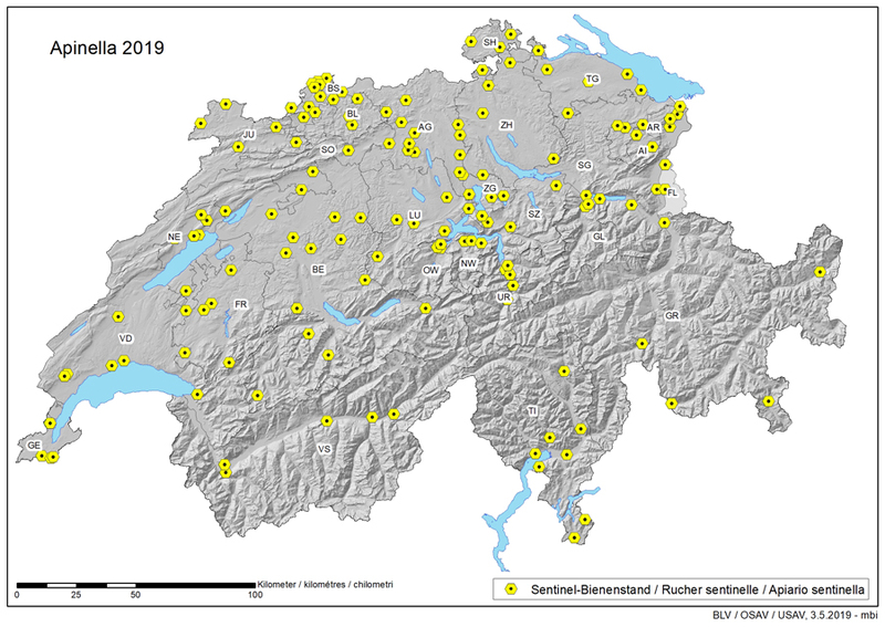 Plus d’information: https://www.blv.admin.ch/blv/fr/home/tiere/tiergesundheit/frueherkennung/apinella.html